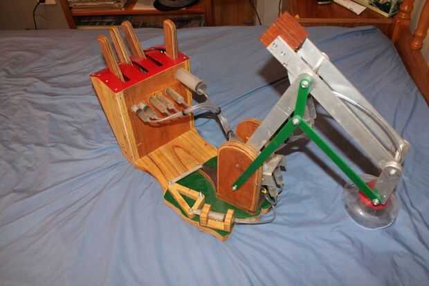 Cavador hidráulico. Este buscador está diseñado para usar hidráulica para excavar tierra, roca y otros materiales. También tiene un montón de otros accesorios que pueden utilizarse para una infinidad de tareas. Brazo robot utilizará un diseño de brazo similar a esto para ganar movimiento completo necesario para la tarea.