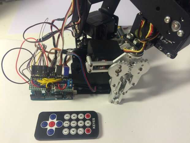 Cuando recibe el código con los códigos de control remotos IR y subir a tu Arduino, que usted puede conectar los servos a los pines en la tarjeta receptora. Ahora ya está todo terminado y listo para recoger cosas y moverse sin hacerlo con la mano!