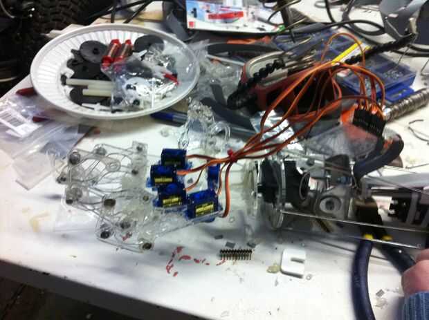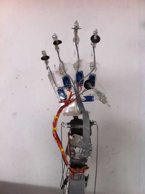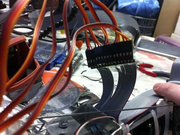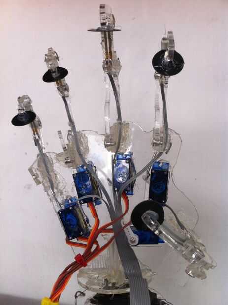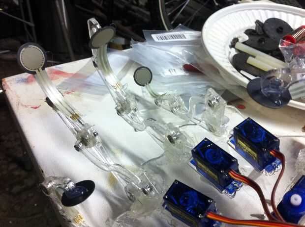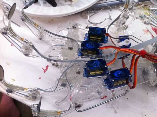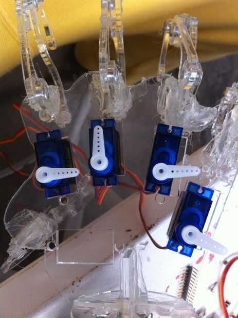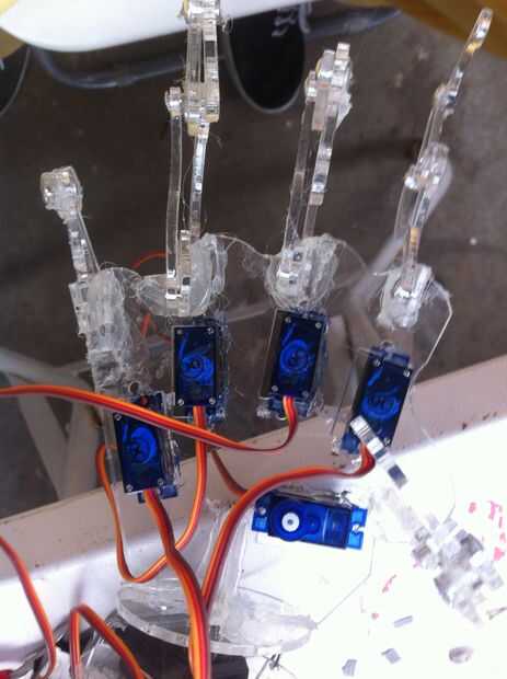 -Conectar los servos de dedo los prolongadores que usted soldar pernos en antes.
