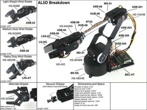 Estoy muy feliz con el AL5D combinado con el BotBoarduino. Y, como se verá más adelante, es un complemento perfecto a una plataforma de vehículo convenientemente tamaño.