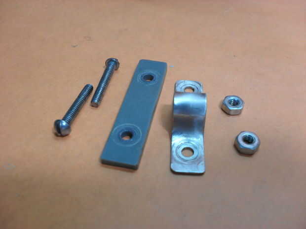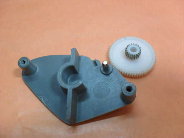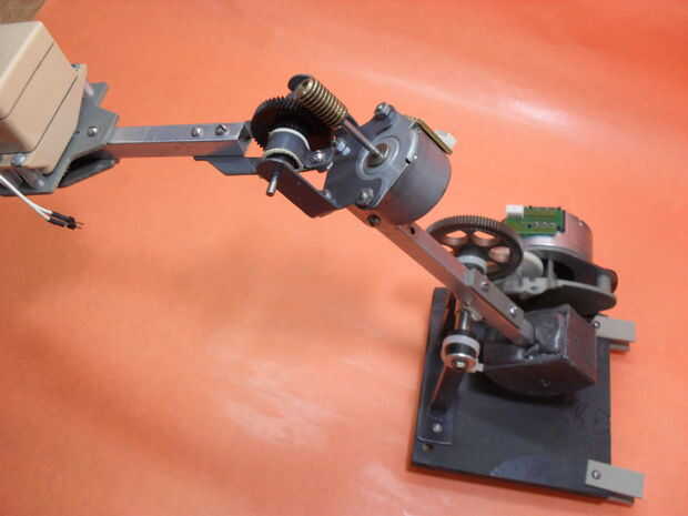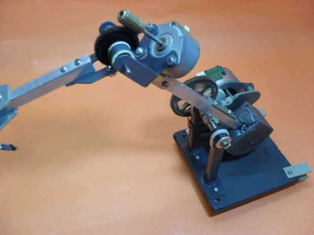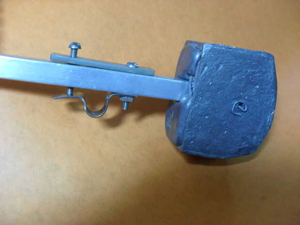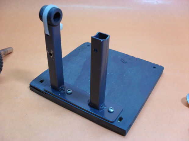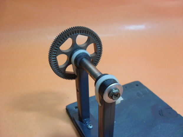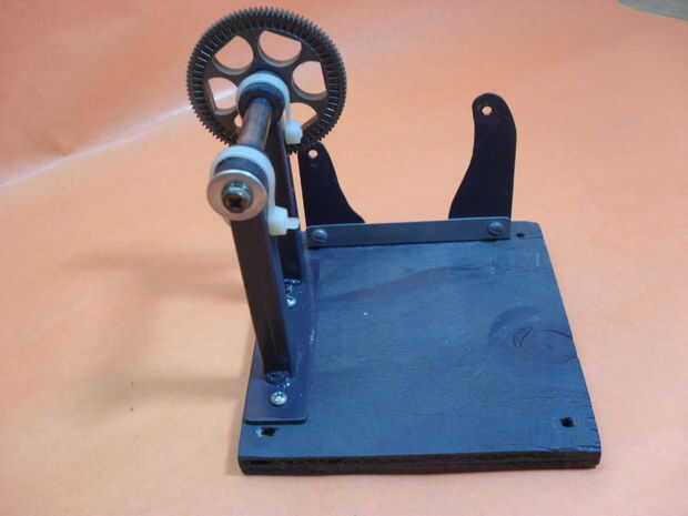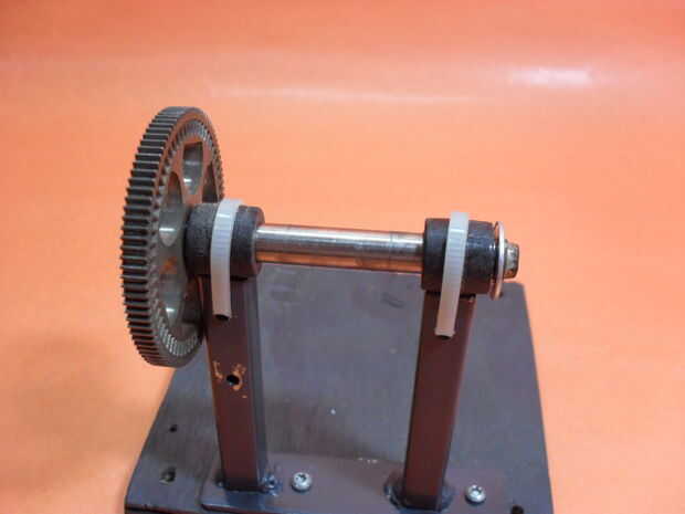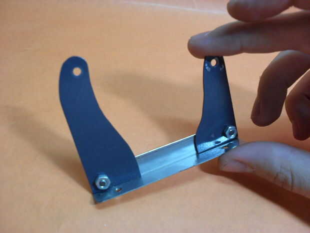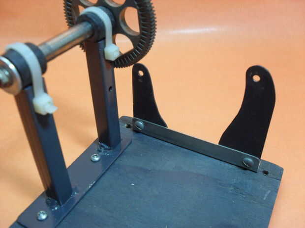 Fije el contrapeso hasta el final de su aluminio y tornillo al eje del engranaje del metal, usando las piezas P2 desde la parte superior y una barra de metal de la parte inferior.