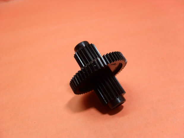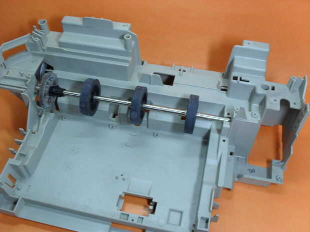 De la parte que se mueve el papel, corté la primera parte con el engranaje del metal y el centro de las ruedas.