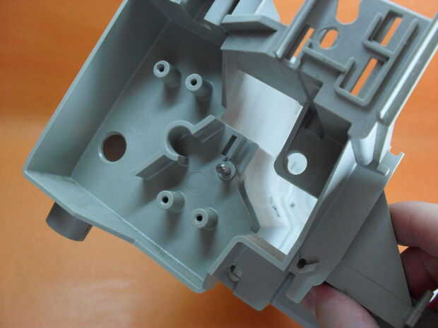 Para la fabricación de las piezas de plástico tienes que encontrar las piezas rectas en el plástico de la impresora y cortar a partir de ahí mediante las plantillas. Hay una parte que es fundamental y debe hacerse con cuidado. Este es el donde se une el motor de pasos grandes. Tienes que cortarlo sin evitar el portador del engranaje plástico.
