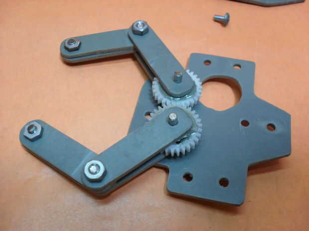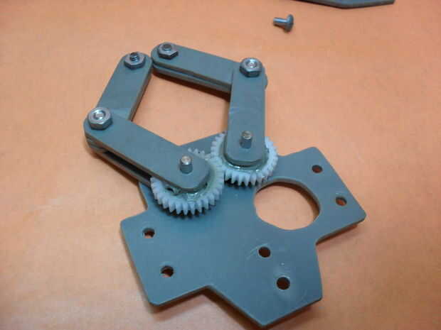 Poner este conjunto de piezas y mida la distancia entre el centro de los engranajes. Ya sabes donde tienes que taladrar en el P4 y P5 y unirlos utilizando a un espaciador de plástico pequeño.