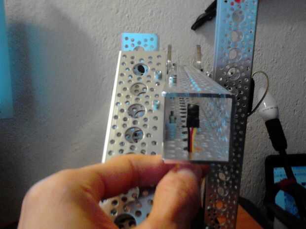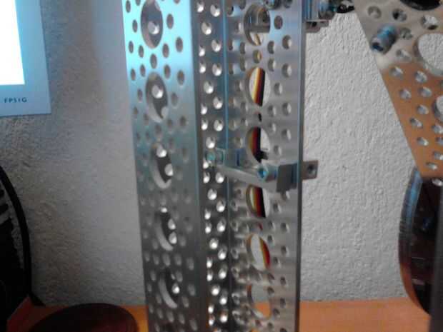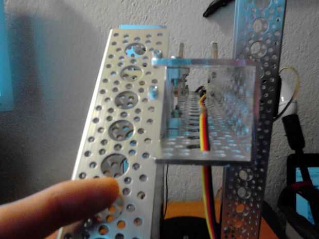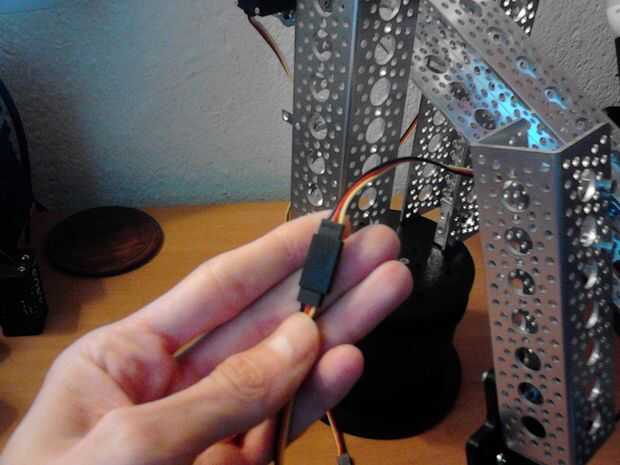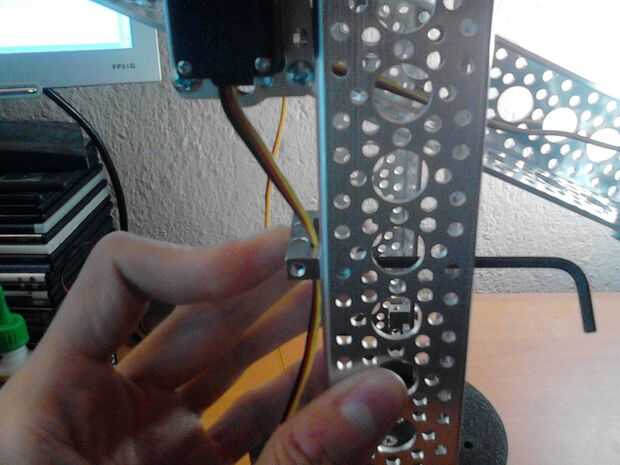 A continuación tenemos que extender el cable de pinza. Muy fácil, conectar la extensión al cable de servo (Asegúrese de no confundir los colores) y llevarla a 15" canal hacia el extremo donde están las placas de disco duro.