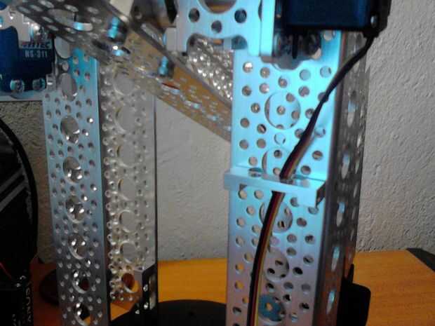 Es muy importante tener los cables en orden. Mejor y es más seguros para el brazo. Vamos a utilizar 4 monturas para hacer a 2 soportes para la sujeción de cables servo.