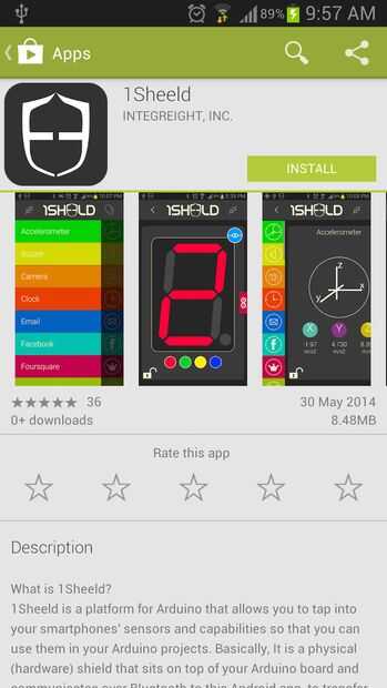 Básicamente, todo lo que tienes que hacer es descargar 1Sheeld aplicación en Play Store. Esta aplicación se deshace del dolor de cabeza para el desarrollo de la aplicación de Android. Descargar la aplicación y 1Sheeld biblioteca