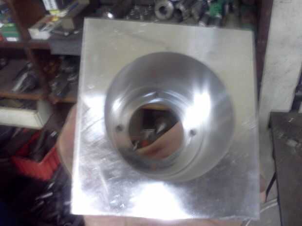 Esta parte que programan para que mi molino crear. Esto se hace para alum 6061 y es medida del motor donde se montará el gearset planetario. Esto bloqueará el motor del robot. Con el motor insertado en el orificio grande se ver los agujeros de 4 perno que serán bloquear el motor.