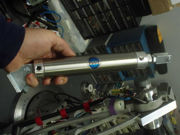Finalmente recibí los cilindros de aire para el brazo del robot. Aquí es uno de ellos. También muestro en la siguiente foto sobre donde irá éste. Muchas personas estaban preocupados que el brazo del robot es también la semana y están semana pero con estos sistema de fuelle que será totalmente programable mediante pwm y ajustable para la carga adicional será ágil y capaz de mantener mi luz de diseño y siendo capaces de moverse con cierto grado de precisión. Tenga en cuenta esto es un prototipo y es de ninguna manera completa. El diseño seguirá evolucionando. Y guardaré este instructible hasta la fecha todo lo puede.