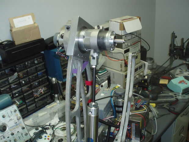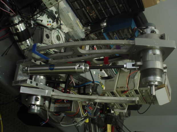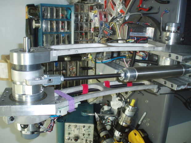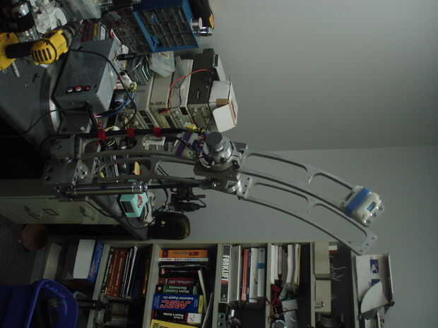La imagen final muestra la extensión completa del brazo y la silla dan idea de la magnitud de esta bestia.