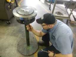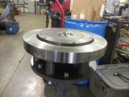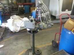 el pedestal al robot primera y segunda foto es la placa de acero con agujeros perforados para recibir la base del pivote del brazo robot