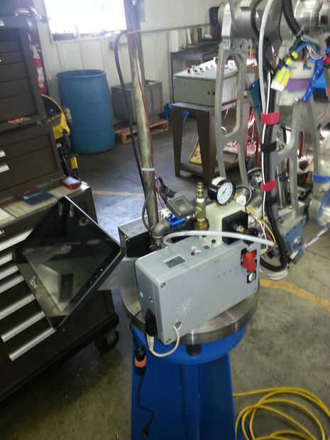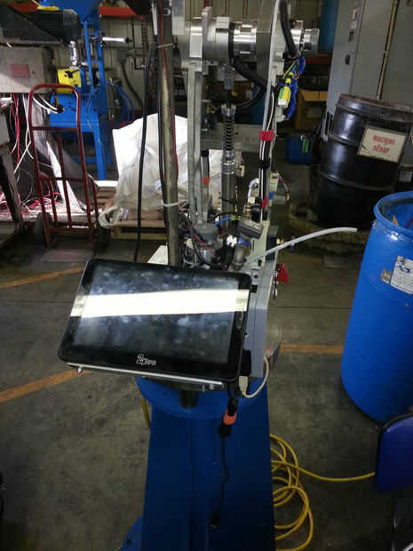 Quité el átomo original PC de la caja gris y en su lugar a esta tableta de la pantalla táctil al robot de control añadí un soporte de mesa para la tableta montar a. Interfaces con los tableros de control en el cuadro a través de un usb al cable serial funciona muy bien. con windows 7.