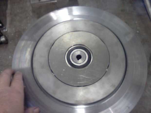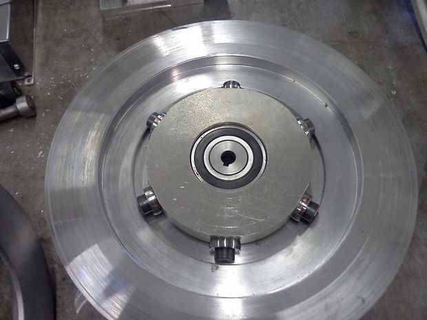 Primero tenía que rechazar la materia prima, entonces corté un agujero en el centro, hice esto con nuestro torno que hizo fácil. Una vez que el agujero era cortado y limpiado y frente. Luego corté la pocked donde los cojinetes se ubicaría. Una vez que se hizo programan molino de mi CNC para perforar los agujeros en la placa por lo que pude del perno esta parte a la base. También programan la CNC para perforar y golpee la base para frío termine esta pieza.