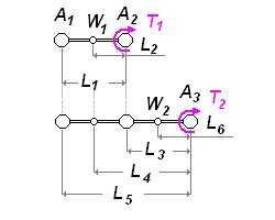 T2 = L5. A1 + L4. W1 + L3. A2 + L6. W2