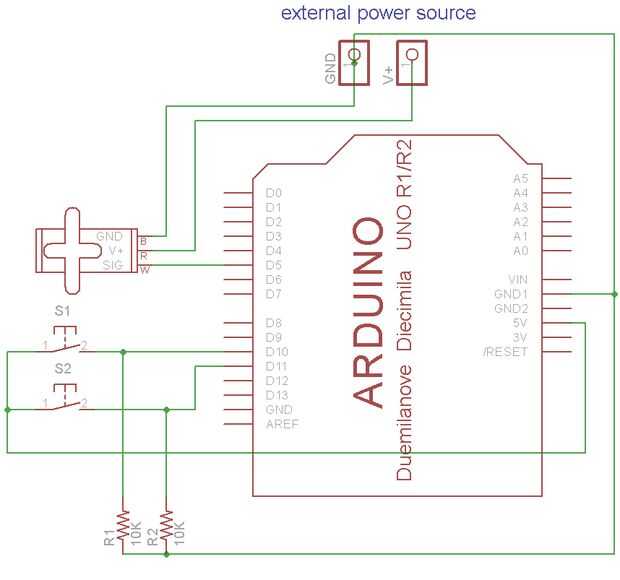El cableado de los pulsadores es como cuadro 6 , utilizamos pull-down resistor para evitar ruidos.