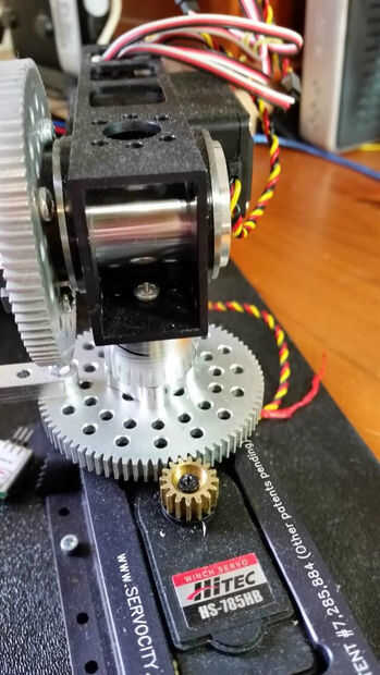 Esta parte puede ser un truco. Tomar dos 1/4" tornillos de cabeza troncocónica y encajar en los agujeros inferiores de la caja de engranajes de hombro en 0 grados y 180 grados. Si el 1/4" de largo tornillos, utilice tornillos más cortos. Alinee los agujeros con los agujeros de 0/180 grados en el espacio 1" eje de la caja de cambios de Base. Apriete los tornillos con un destornillador de cabeza philips. He usado el destornillador iFIx para esto - encaja muy bien en cuartos apretados. Usted tendrá que ángulo el destornillador para hacer este trabajo. Nota: Si tuviera que hacerlo hubiera cogido la versión sin montar.