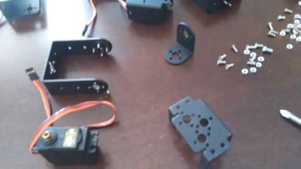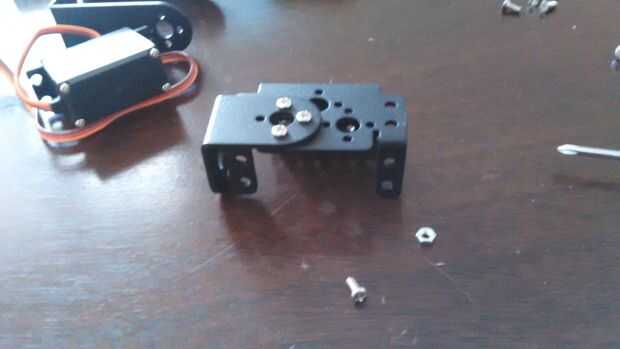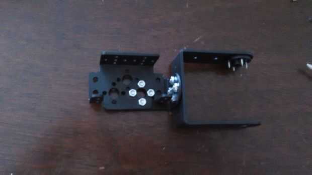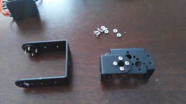 1. reúna un Servo soporte con rodamiento adjunto *, un Servo, el soporte en forma de L y el soporte en forma de U con el cuerno del servo conectado.