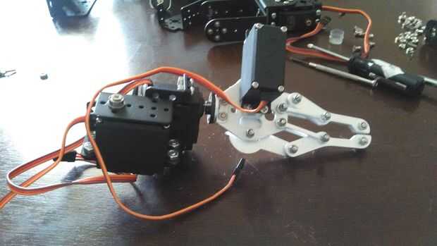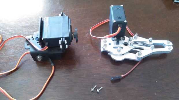 1. agarra el marco de la muñeca, la garra, un cuerno redondo servo, 2 tornillos de horn de servo y un servo engranaje del eje.