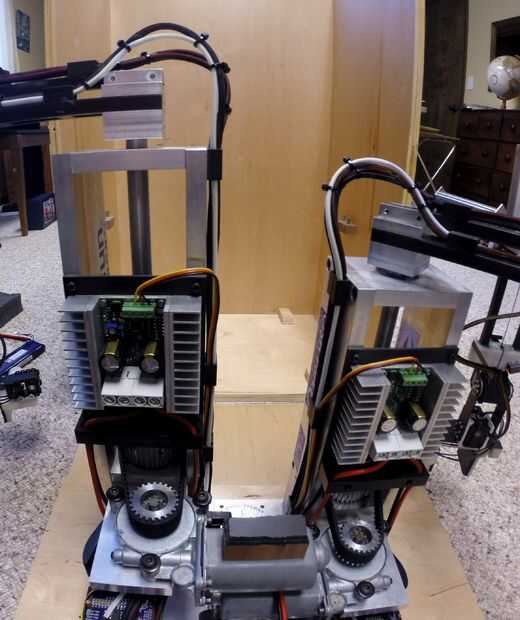 Cada uno de los dos principales brazos tiene la mitad de los servos Dynamixel y uno de la ventana de coche motores. El resto de los motores se utilizan en el conjunto del brazo extensor.