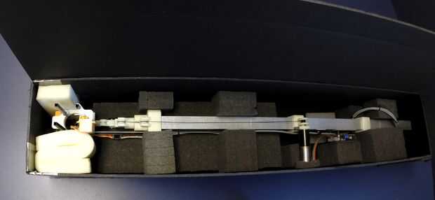 Los brazos de dos control han sido empaquetados individualmente en estos casos de carga del puerto. Había varias capas de espuma que impidió a los brazos moverse mientras está en tránsito.