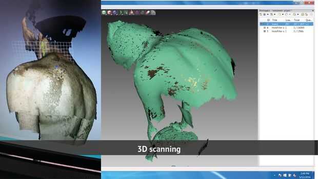 VU qu'il souhaite hijo tatouage entre l'épaule et la colonne vertébrale, une grande partie du dos de nous scannons de Pierre. La postura prise lors du exploración doit être suffisamment confortable pour être reproduite à l'identique colgante l'opération du tatouage. Une fois le exploración du dos et par de traitement de post hijo estudio Artec terminé, il est nécessaire de générer une superficie lisse a partir du maillage obtenu. Darle "tire" de T-splines dans fusión 360 nous est ici d ' une très grande ayudante: il permet de coller tous les puntos de contrôles d ' une polisuperficies sur le maillage du dos. Et ainsi obtenir un cuerpo l ' on pourra editar fácilmente, notamment pour y projeter notre tatouage.