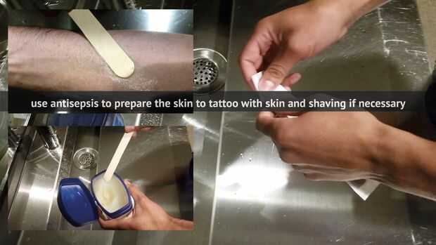 L des étapes les plus importantes avant l'opération du tatouage est le nettoyage et la désinfection de la zona à tatouer.