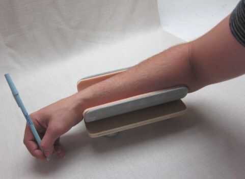 Se fabricó un planeador del brazo para ayudar a las personas con fuerza limitada de la extremidad superior para realizar la escritura y otras tareas de motor.