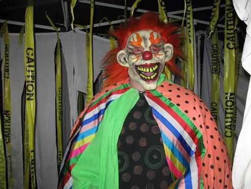 el resto de su traje es una sudadera negra y pantalón con círculos reactiva pintado en luz negra y una máscara de payaso regular, también tratados con blacklight reactivo pinturas en lugares estratégicos (alrededor de ojos y dientes)