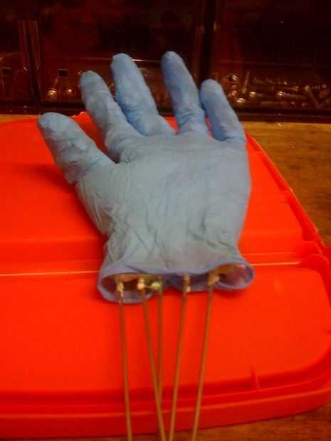 ahora que tienes los dedos rellenos y los lugares de rayos, gran espuma de manos. no es mucho! Recuerde que se expande como un loco! Si necesita un poco más regordete después de que esté configurado, basta con agregar un poco más gran espuma.