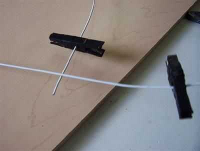 Enhebra el alambre por el muelle. Es posible que tengas pasar por una capa de cinta adhesiva... Repite este paso en el otro lado.