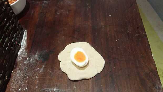 Cuadro 2. aplanar la masa y colocar el huevo la mitad sobre ella