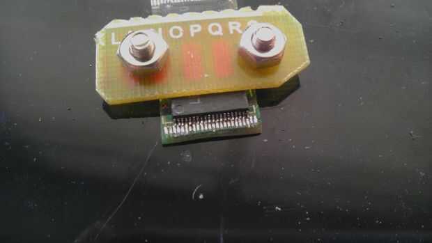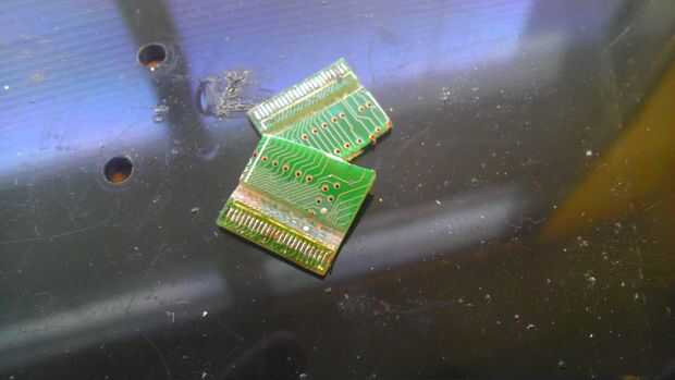 Para asegurar que las patas del IC no ladee demasiado y romper, vamos a soldar en un pequeño trozo de PCB con solo las pastillas. Para conseguir esto tomé una Dremel a la PCB que albergaba el IC antes y corta las pastillas. Entonces hice un corte menor alrededor de la almohadilla para asegurar que toda la conexión a los electrodos se cortan. También hay extensa Instructables sobre cómo soldar soportes de superficie.