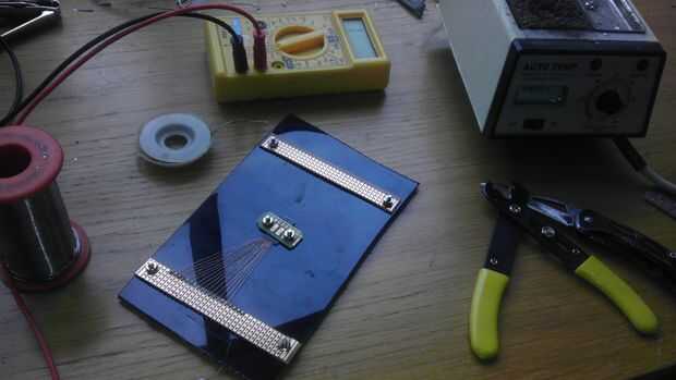 Antes de soldar todos los puntos a soldar en debe ser fijo. La foto muestra la disposición general de todos los componentes.