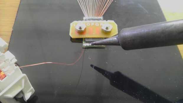 3) tense el alambre a la Junta de pinout. Aplicar soldadura y calor para el pinout hasta que el esmalte se deshace.