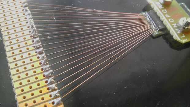 El resultado final debe ser un cable ligeramente tensado de la IC a la Junta de pinout.