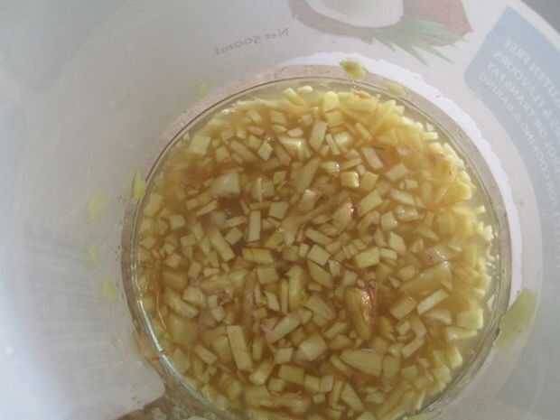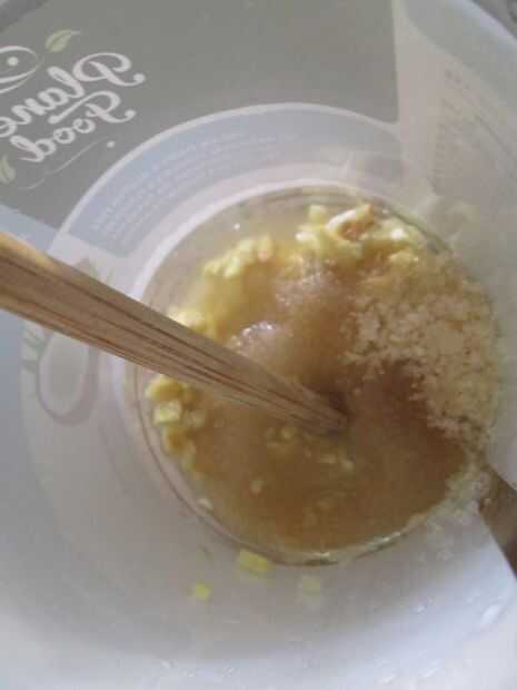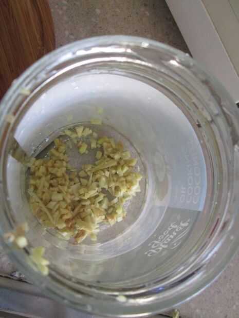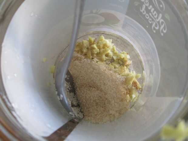 Agregar el rallado (o picado jengibre) a la jarra de vidrio. Añadir dos cucharadas de azúcar y dos cucharadas de agua.
