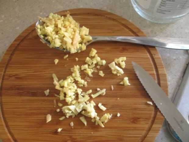 Conseguir el jengibre, pelarlo si quieres, acaban de lavar mina. La parrilla lo suficiente para hacer dos cucharadas. No tengo un rallador usé un cuchillo.