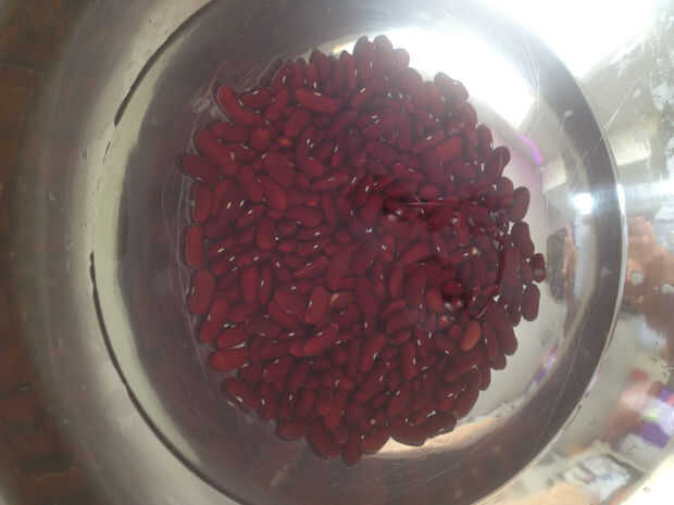 Remojar una taza de frijol rojo en el agua durante la noche, enjuagar una vez, seguir agregando agua según sea necesario