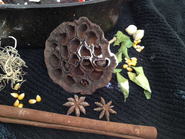 Para las decoraciones de las mismas, sólo tiene que utilizar cualquier hierbas que puedes encontrar en tu despensa! (Utilicé nuez moscada entera, hojas de Lima kafir, candlenut, canela, maíz seco, hojas de salam y anís estrella)