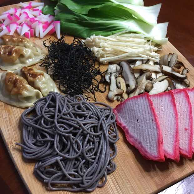 Empezar a cocinar el caldo. Mina era una base de polvo que se agrega al agua que es una rápida cena fácil 15 minutos. Tienen bases de pasta o puedes hacer tus propios copos de bonito y algas secas.