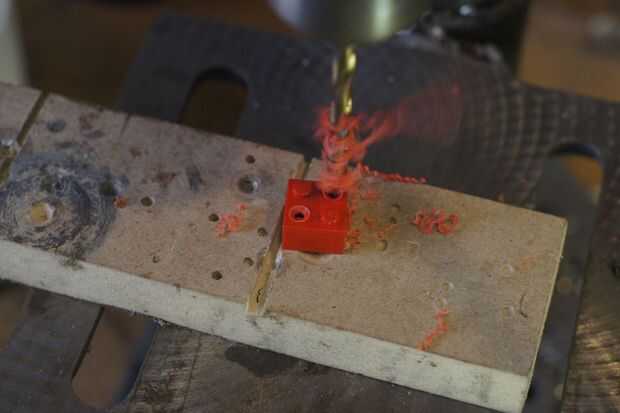 • Preparo un viejo wooddrill de 8 mm para perforar hacia fuera el perno en el interior del ladrillo. Afile el punto del taladro hasta que quede totalmente plano.