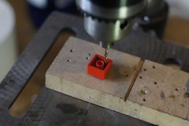 El ladrillo conector tendrá dos partes, como el ladrillo de LED. La parte superior será un ladrillo LEGO rojo de 2 x 2 y la parte inferior una placa negra de LEGO de 2 x 2.