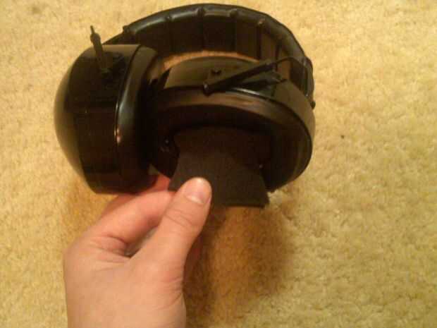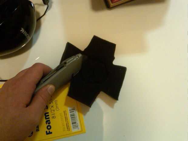 En este siguiente paso, vamos a cortar una hierba poco profunda en cada inserto de espuma. Esta hierba es donde estamos poniendo nuestros auriculares.