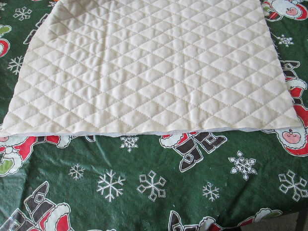 Primero recorte el exceso bateo en cada borde de material acolchado.