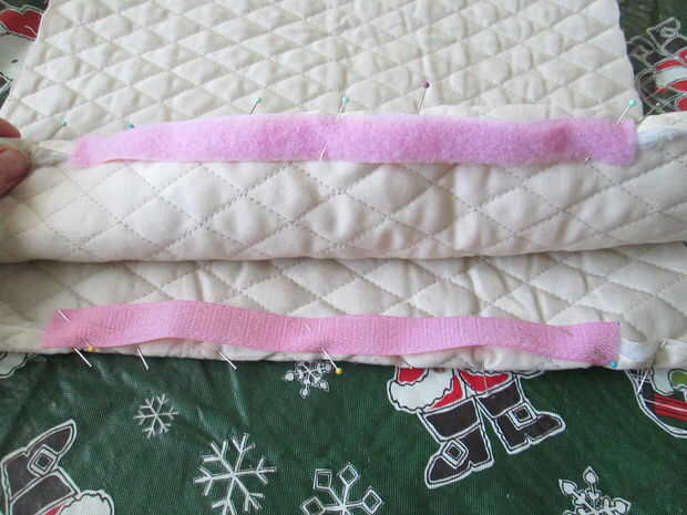 Entonces precisar los bordes que a recortan.   Precisar cada mitad del sujetador de gancho y lazo en el borde mismo