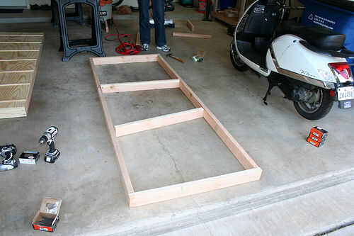 Encontrar una superficie razonablemente plana para construir esta (acaba de encontrar algo que sea "suficientemente buena"). He usado el suelo de mi garaje.