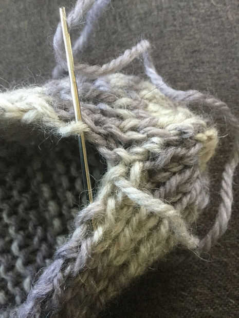Fila 3: {Derecho 1, knit 1} repetir {sección soporte curvado} 5 (6, 7) veces, tejer 10 (12, 14), {derecho 1, knit 1} repetir {Soportes curvos} al final de la fila.