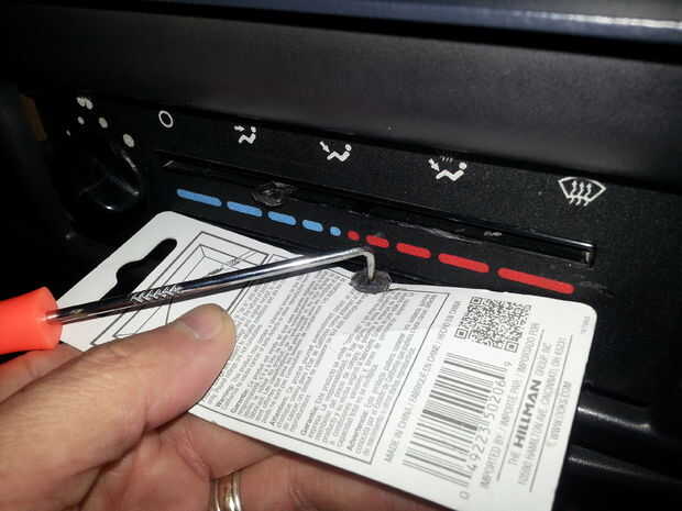 Comenzamos utilizando un pedazo de papel y un punzón para medir hasta qué punto de la cara del panel el agujero tiene que ser para la espiga vertical.