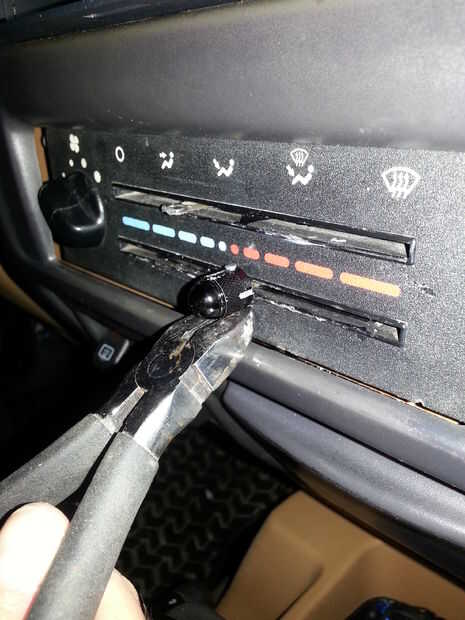 Montaje final. Mi Jeep, que el mando necesita girar levemente mientras que el brazo se mueve a través, por lo tanto opté por utilizar el pegamento de silicona, que permanecerá flexible cuando se seca, pero todavía mantener el pin en posición. Después de llenar la tapa con pegamento y montaje, usé algunos cortadores de alambre para cortar la parte sobrante del perno vertical... deje que el pegamento seco, y... listo!!