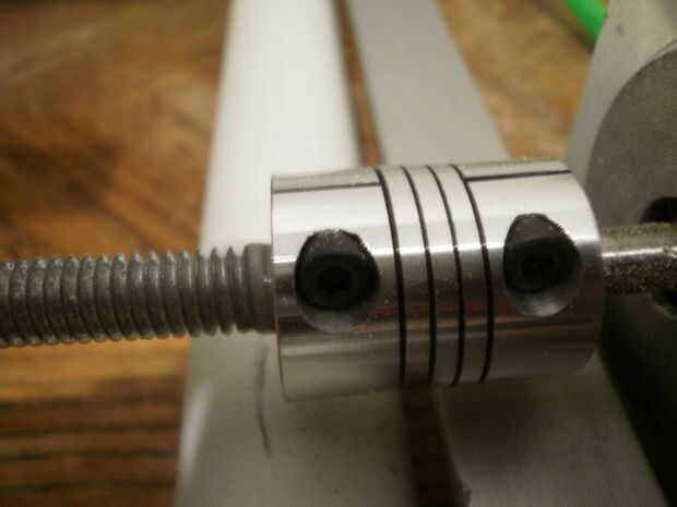 Si regular, varilla de rosca barato es su opción para el husillo, recomiendo el acoplamiento en la foto principal frente en la segunda foto. En la segunda foto requiere un fuste liso porque los tornillos son apretado dig en el eje para proporcionar la fuerza de sujeción. Cuando me di cuenta que no iba a funcionar con una varilla totalmente roscada compré que bloquee el vástago circunferencial y fijarlo con la abrazadera por todos los lados.